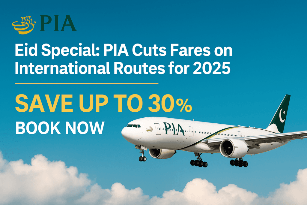 PIA launches huge Eid 2025 discounts on international flights to UAE, UK, Saudi Arabia, Canada & more. Book now and save big! Offer valid for limited time.