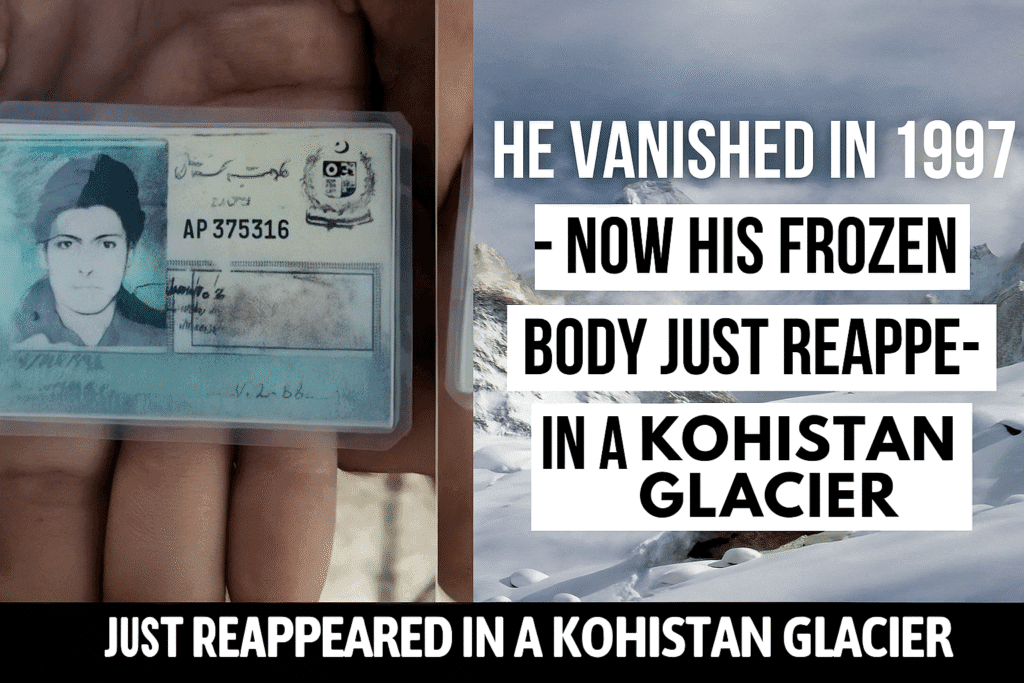 In a story that feels more like a scene from a mystery thriller than real life, the peaceful glaciers of Kohistan have just given up a dark, frozen secret — the perfectly preserved body of a man who vanished without a trace in 1997.