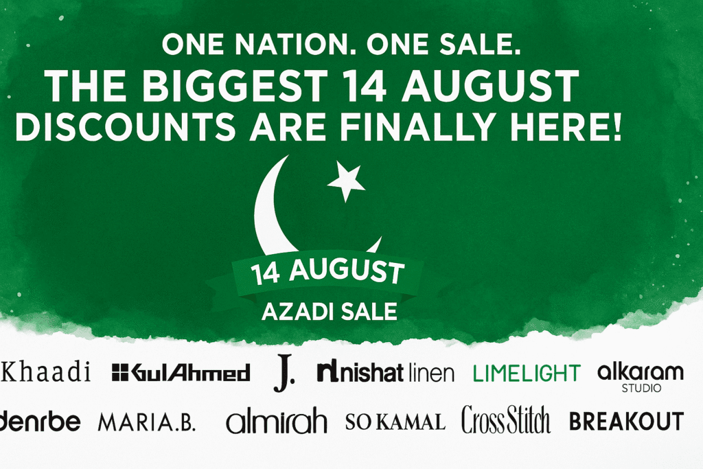 This 14 August, Pakistan isn’t just waving flags — it’s waving goodbye to full prices! From your favorite designer lawn to everyday essentials, the biggest Independence Day sales of the year have officially begun. And guess what? The discounts this time are next level — up to 70% off!